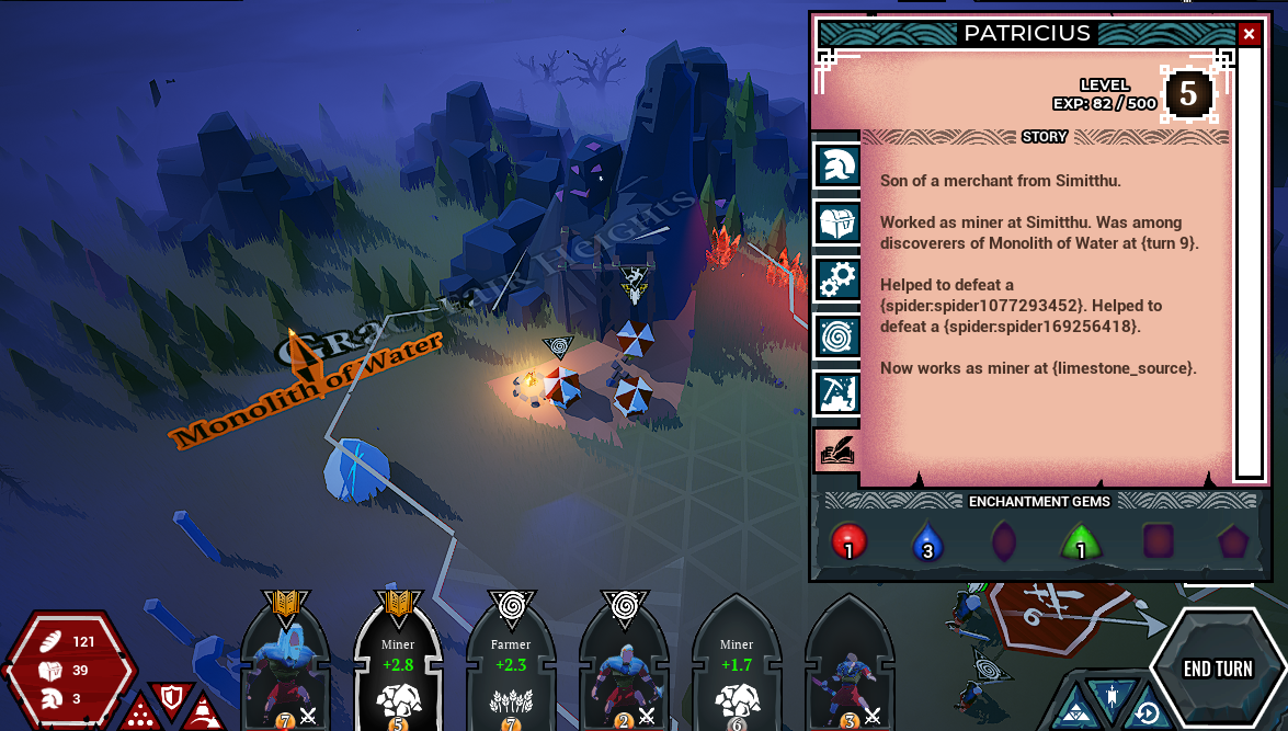 This week I conquered a subreddit with one post, Characteristics in /r/magicbuilding. Also, I fixed quite big amount of bugs and made something essential for a 4X game: sound a visual effect for fog of war reveal! See it here. This video also shows another visual update: new animation of next turn movement visualization when you assign movement order for your creatures. This makes simultaneous turns gameplay more convenient, and adds a lot of feedback when you right click.